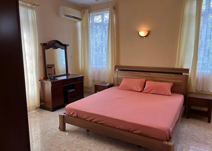 Diese Apartments liegt in 2 Kilometer Entfernung vom Mauritius Aquarium. Machen Sie einen ruhigen 10-minütigen Spaziergang ins Herz der Innenstadt von Trou aux Biches. Das 150 m² große Maison Blanche Self Catering Apartment ist 10 Fahrminuten vom Tamil Surya Oudaya Sangam Tempel entfernt.